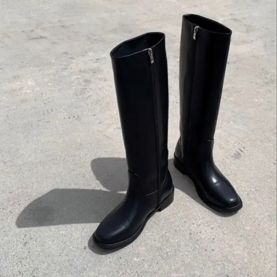 • Fin 블랙 가죽 롱 부츠 지퍼 포함