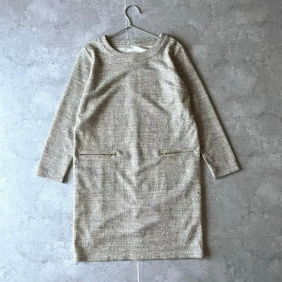 세레모니 장면에 적합한, 트위드 소재의 여성용 포멀 원피스입니다.