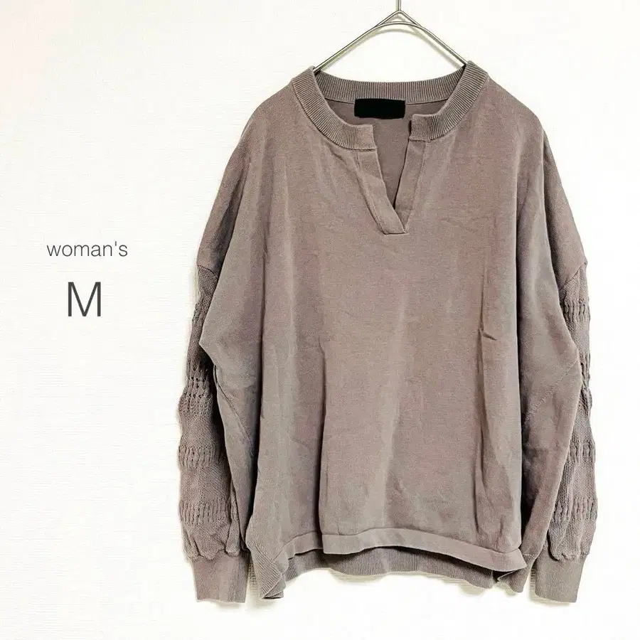 스키퍼 티셔츠 [ M ] 긴팔 면100 오버 사이즈 빅 루즈 소매 시스루 편직