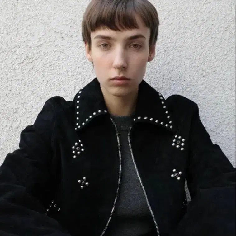 리얼 스웨이드를 넉넉하게 사용한, 존재감 있는 스터드 블루종.