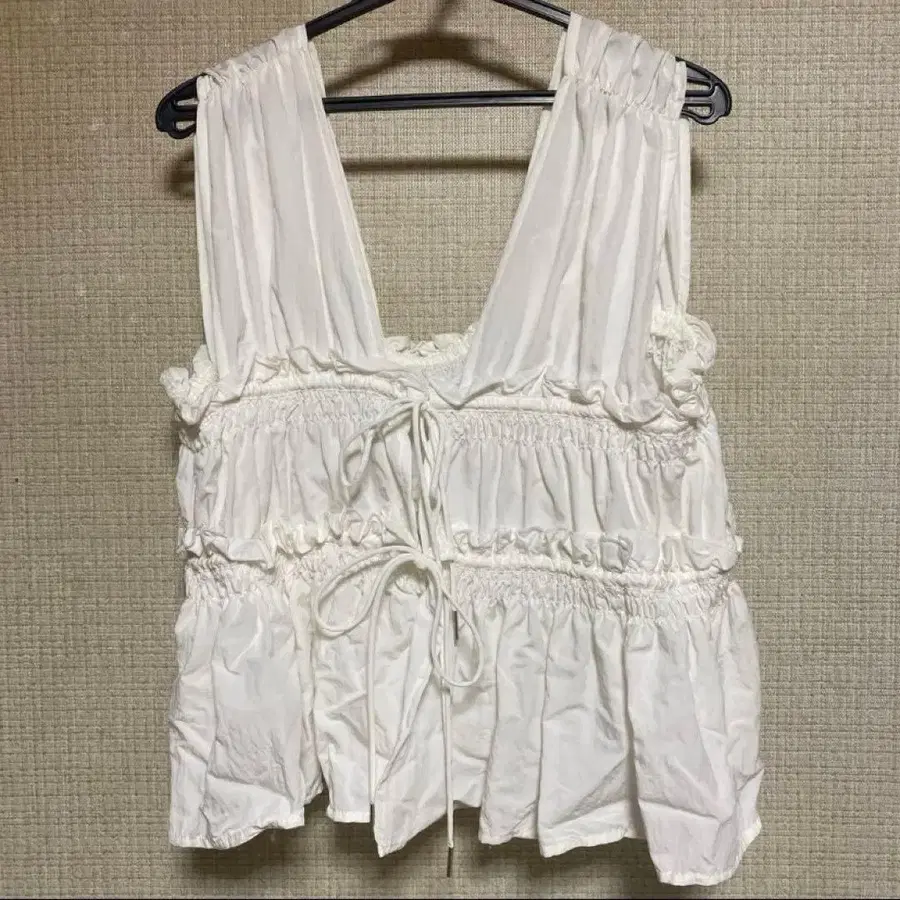 DISCOAT 개더 리본 사용 슬리브리스 블라우스