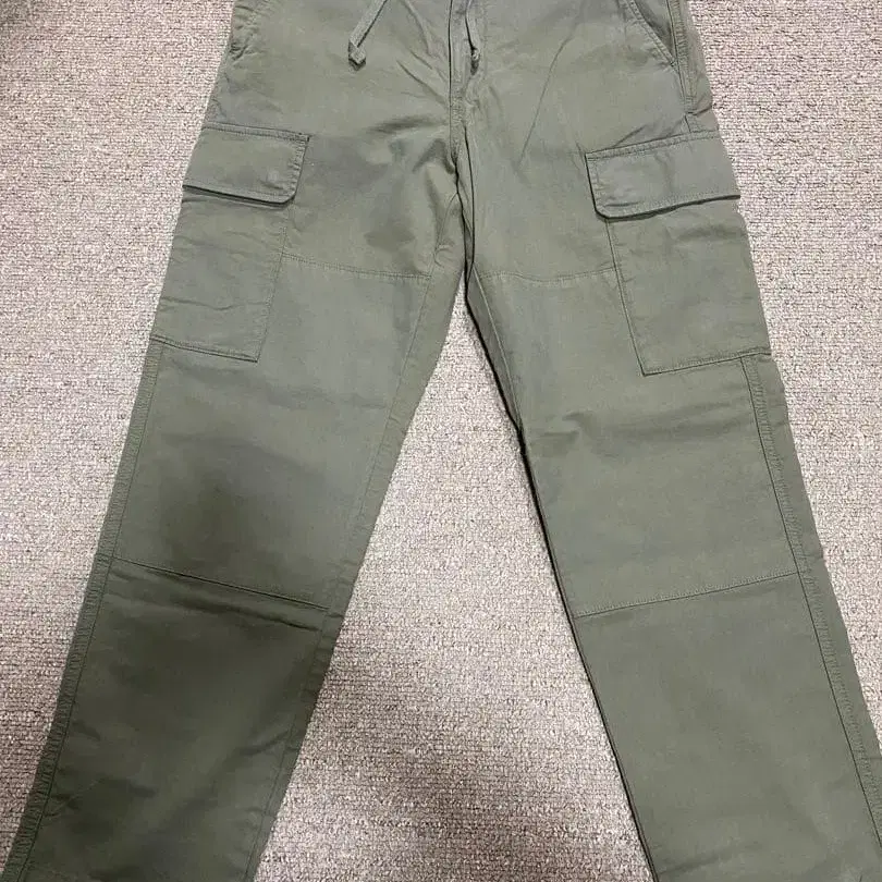 자동 번역되었어요. 원문보기카키색 100% 코튼 소재 카고 팬츠, 포켓 4개 부착으로 실용적입니다.