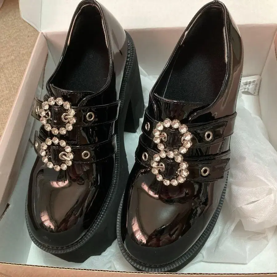 [ 박스 포함 ] BUBBLES 더블 버클 통굽 신발 37