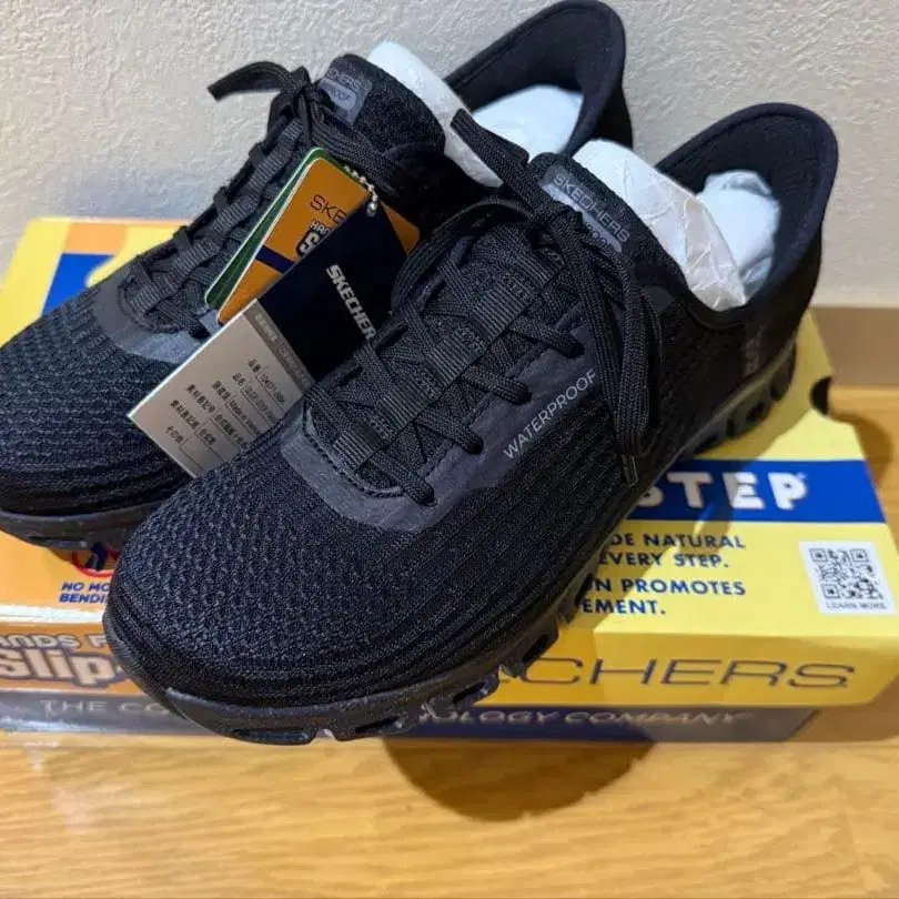 방수 기능을 갖춘 SKECHERS의 블랙스 스니커즈. 미사용 새상품입니다. - 브랜드: SKECHERS - 모델: Slip-ins - 색상: 블랙 - 밑창 디자인: 그립감이 좋은 러버 솔 - 특징: 방수 기능