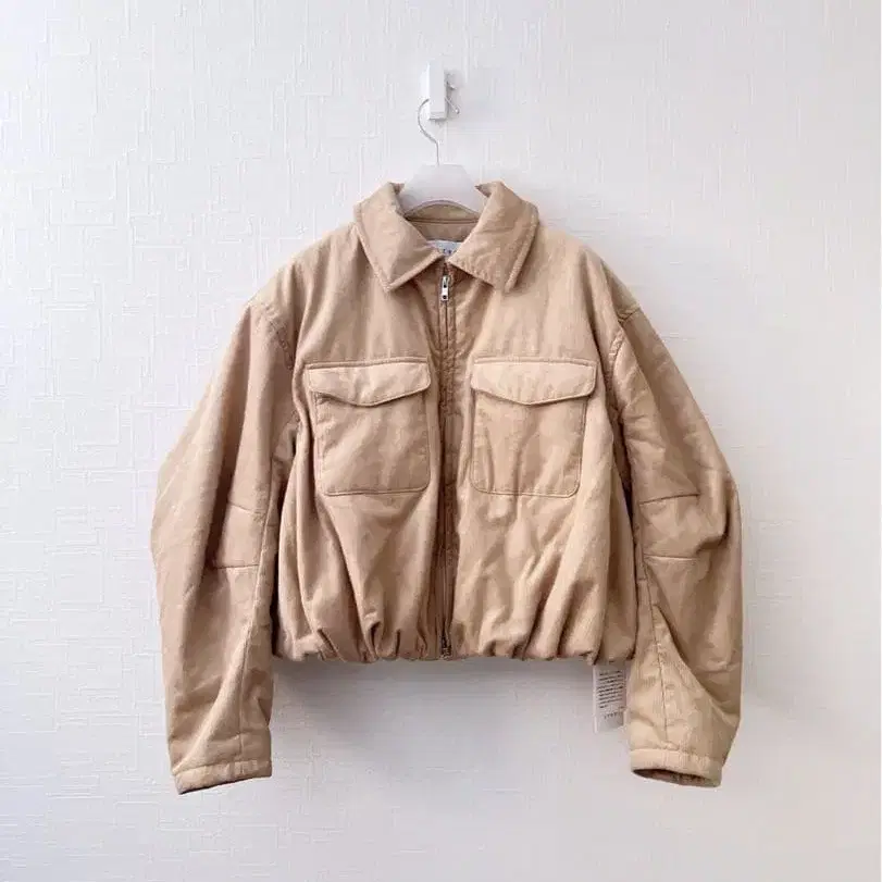 시즌 분위기를 돋우는, 인조 가죽과 코듀로이의 이종 소재 전개가 매력적인 충전솜 블루종