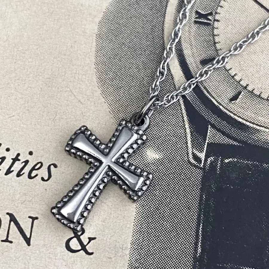 새상품, 미사용 빈티지 밀그레인 크로스 목걸이 리버서블 316L 스테인리스 소재입니다.