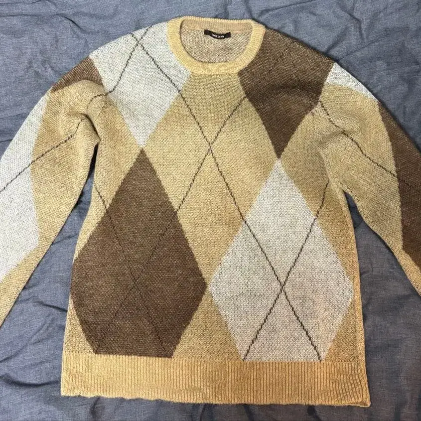 COMME CA MEN 모헤어 혼방 아가일 무늬 니트 스웨터