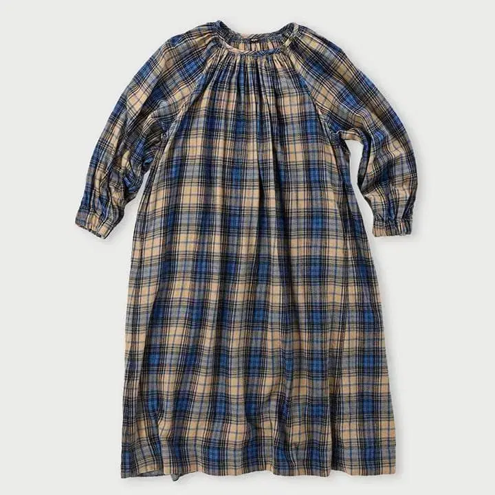 [컨디션 최상] 45R 네이비 나염 린넨 드레스 롱 슬리브 체크