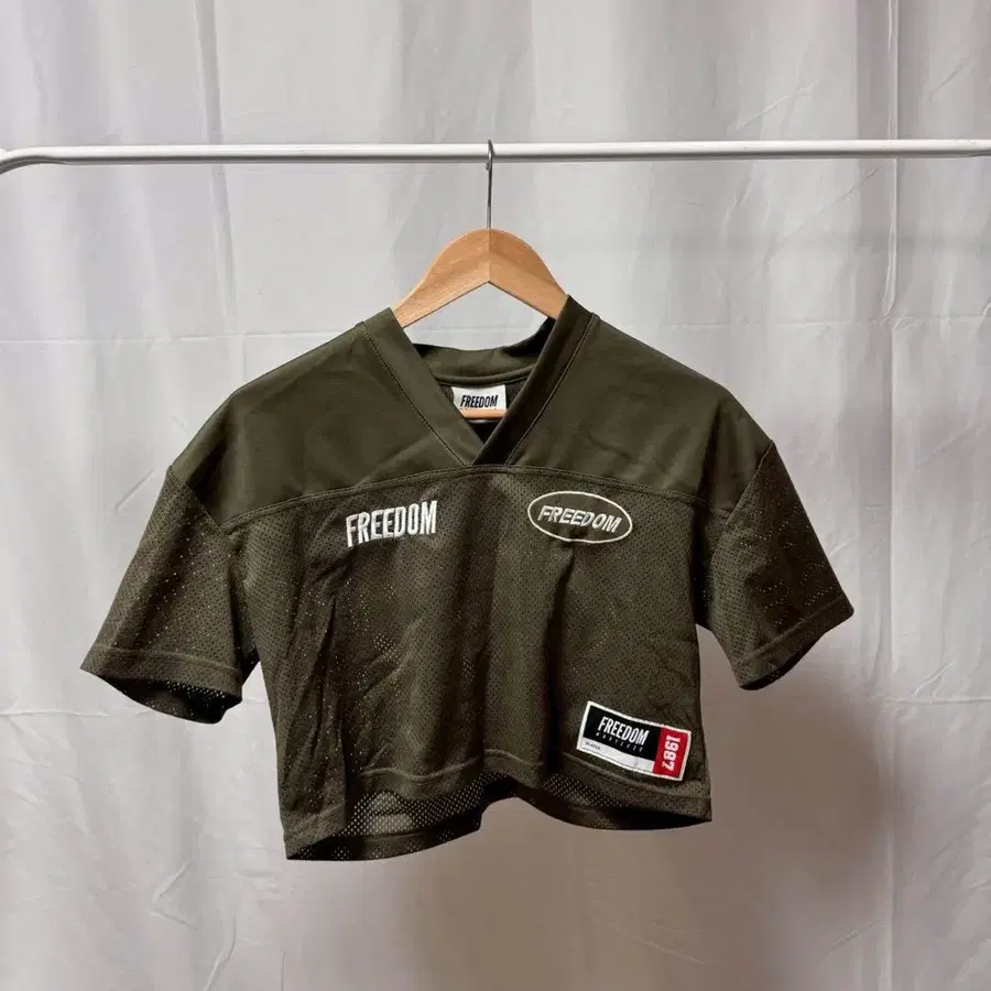 **FREEDOM 크롭 기장 메쉬 상의 ( khaki )** 입니다.