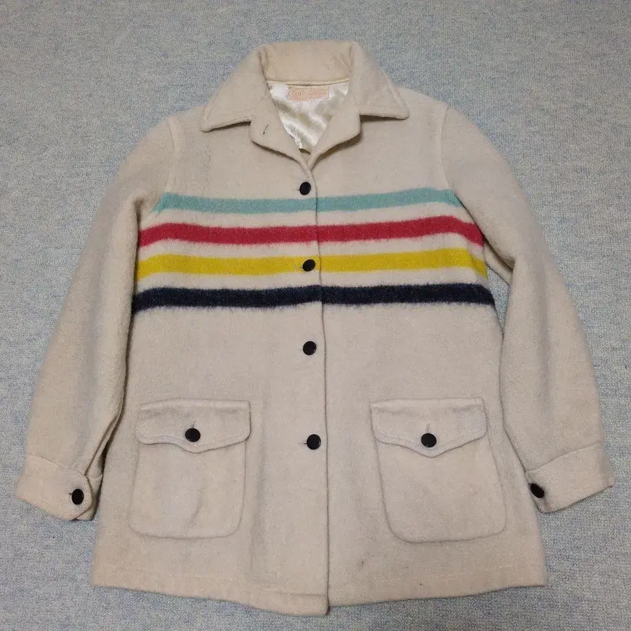 레어 HUDSON'S BAY 멀티보더 울 담요 코트