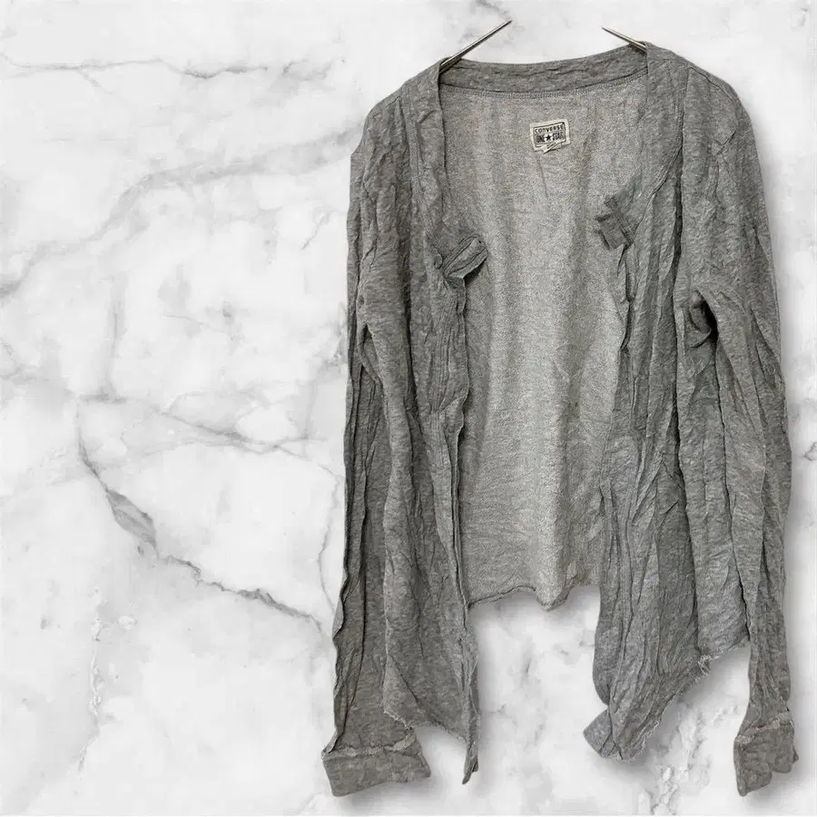 자동 번역되었어요. 원문보기부드러운 그레이 색상의 가디건, 코튼 혼방 소재로 쾌적한 착용감.