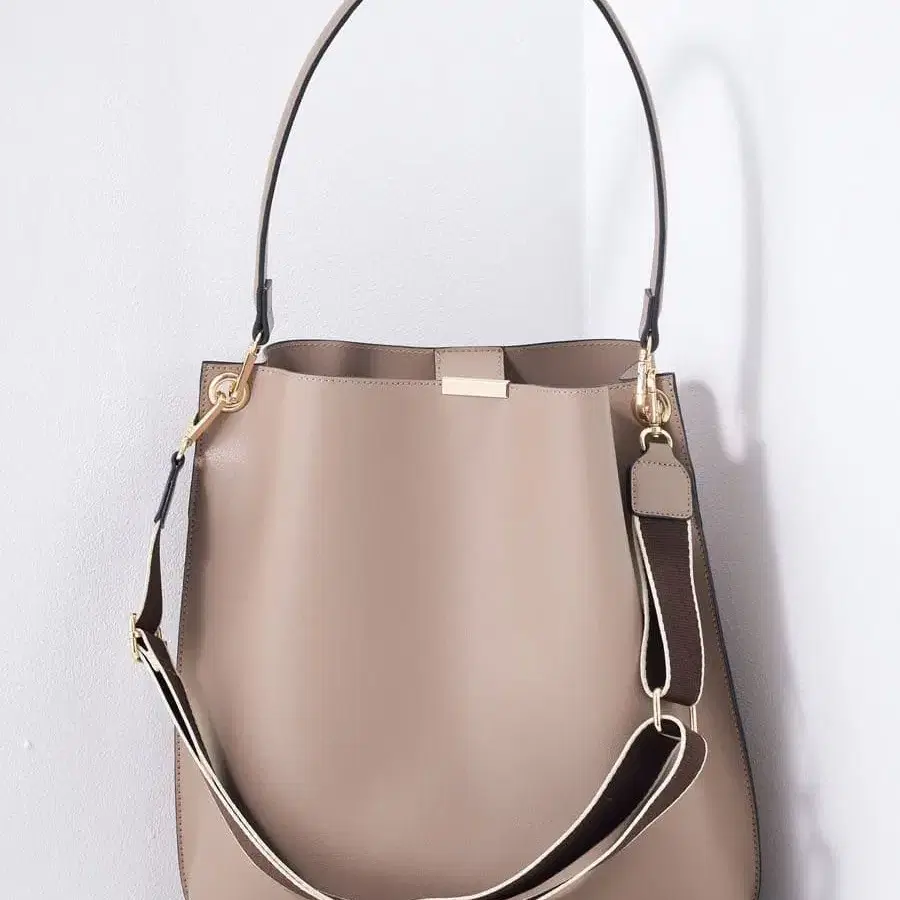 핸들은 숄더로 멜 수 있는 인조 가죽 핸들과, 길이 조절 가능한 배색 핸들 두 가지가 세트로, 탈부착이 가능합니다.