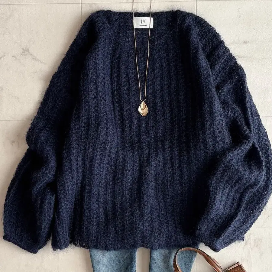 컨디션 최상 프리미어 아롱디스망 로우 게이지 모헤어 루즈 니트 네이비