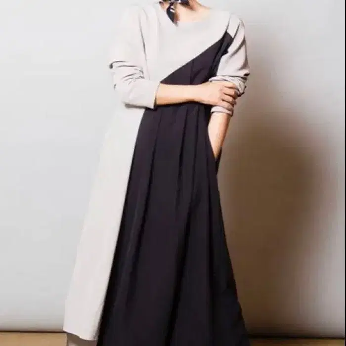 큼직한 턱이 플리츠처럼, 언뜻 보기에 클래시컬한 원피스.