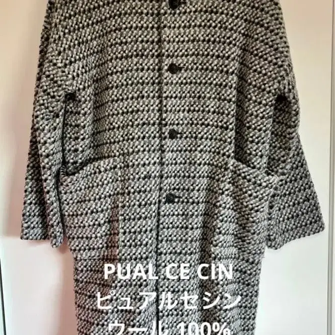 울 트위드풍 노카라 코트