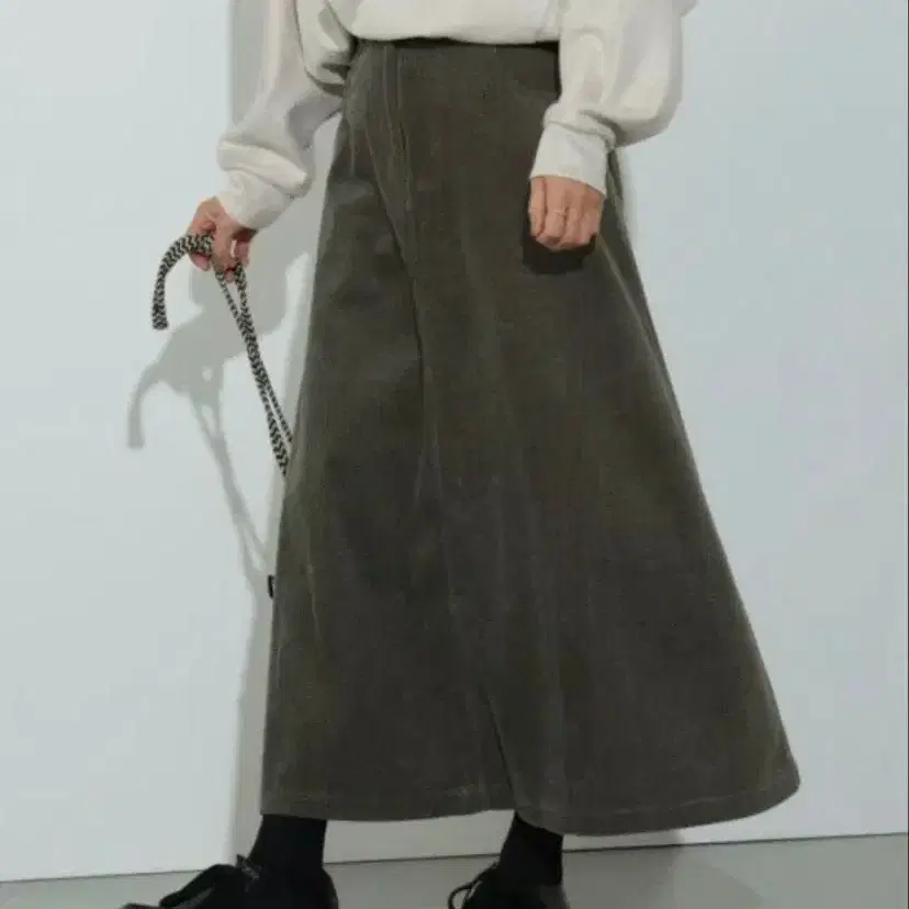 빈티지 코듀로이 롱 플레어 스커트 그레이