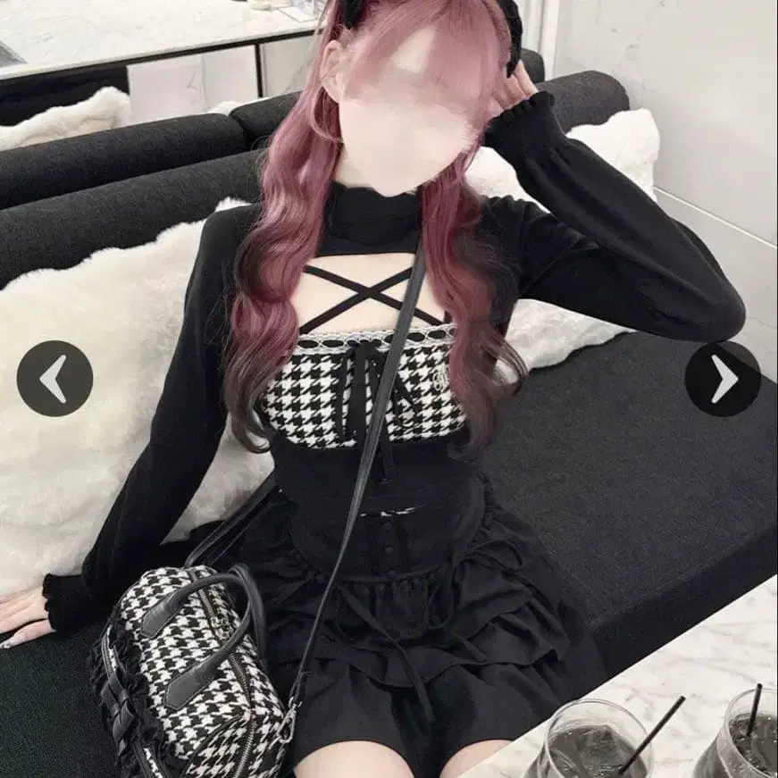 HONEY MEW 하운드투스 체크 패턴 하이넥 앙상블 상의 블랙