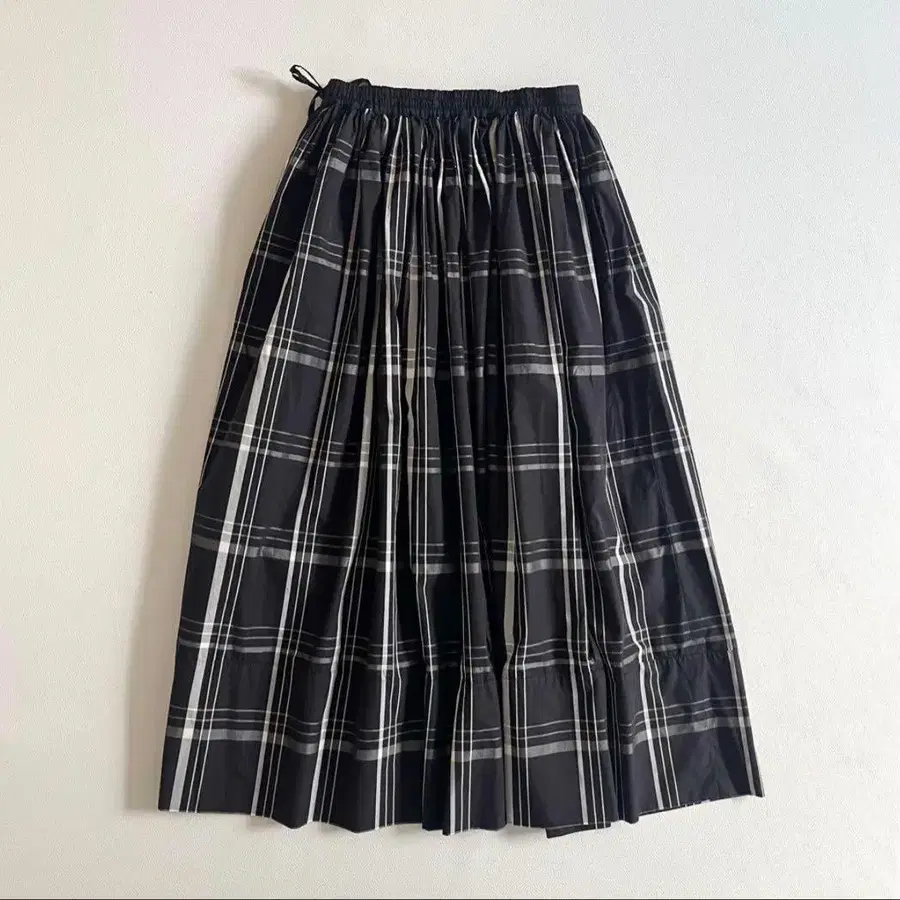 새상품급 드로어 허리 리본 체크 개더 스커트 블랙 36 맥시