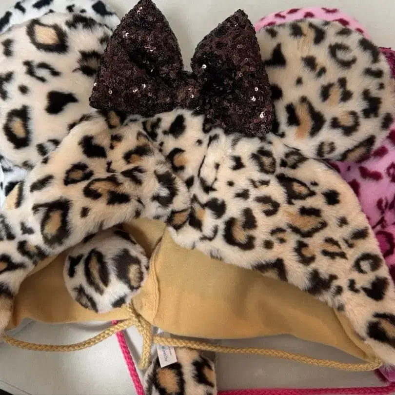 레오파드 무늬 팬캡 3개 세트 핑크, 브라운, 화이트