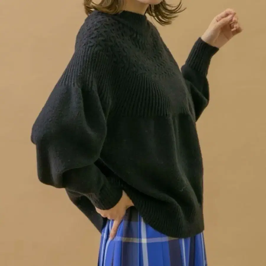니트에 디자인이 있기 때문에 하의는 심플해도 괜찮지만, 체크 스커트 등 패턴 제품과의 조합도 추천합니다.