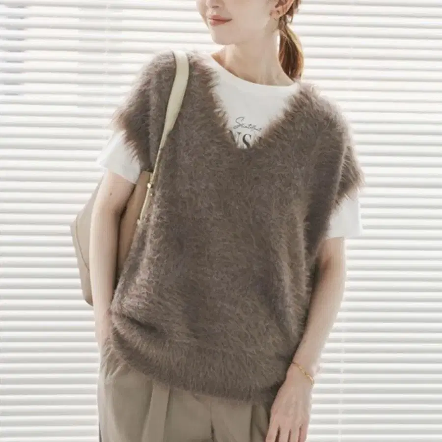 풀오버로도 착용 가능한 프렌치 슬리브 디자인의 니트 베스트.