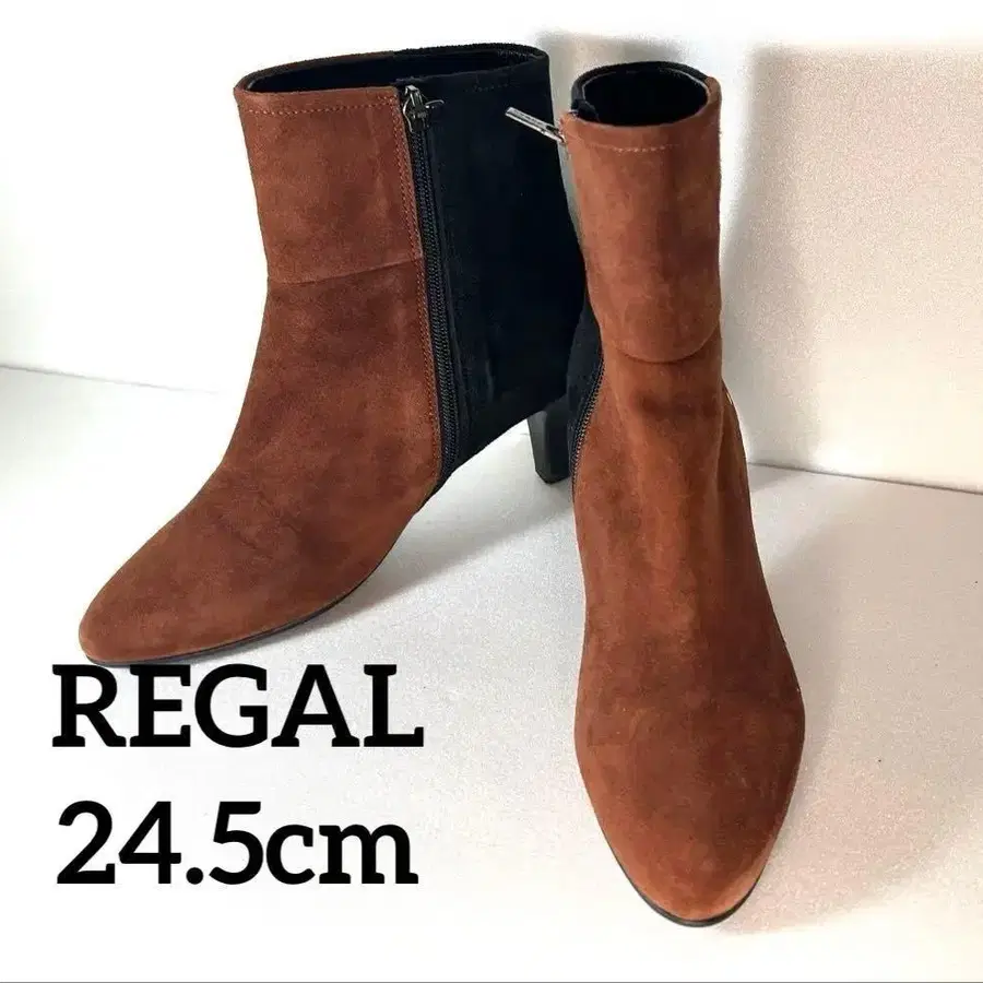 REGAL 스웨이드 숏부츠 브라운 블랙 사이드 지퍼 24.5cm