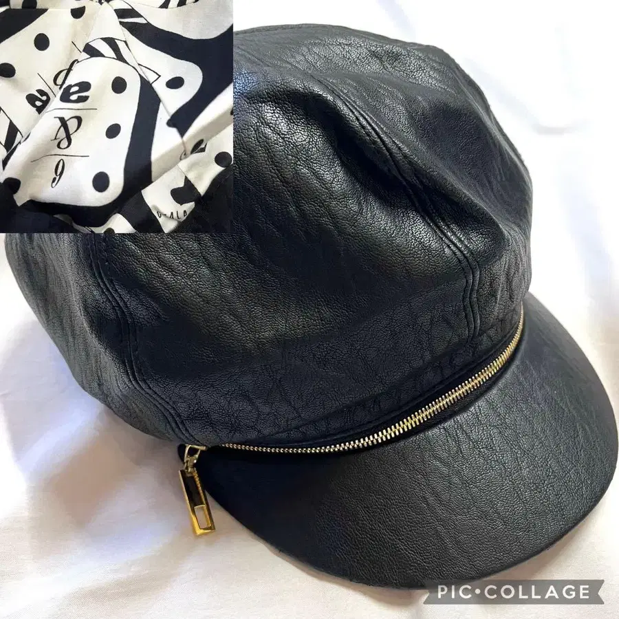 CA4LA 카시라 지퍼 부드러운 가죽 2way 헌팅 캡 베레모 블랙