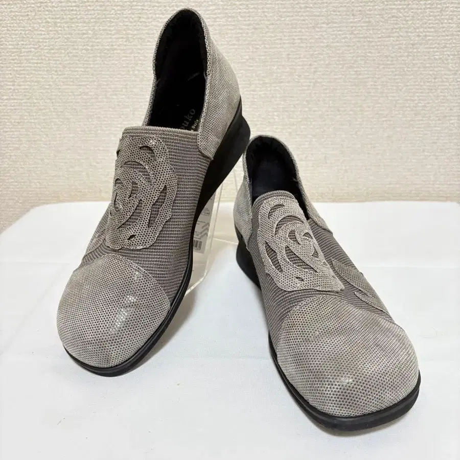 꽃무늬 모티브가 장식된 스트레치성 있는 슬립온 타입으로, 인솔에는 쿠션이 내장되어 있습니다.
