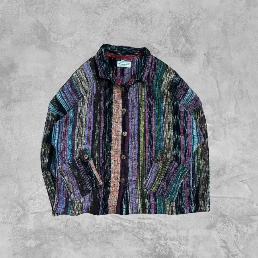 퍼플, 그린, 브라운, 핑크 등을 포함한 다색의 직조 원단은 양산 의류에는 없는 구제 의류만의 분위기.
