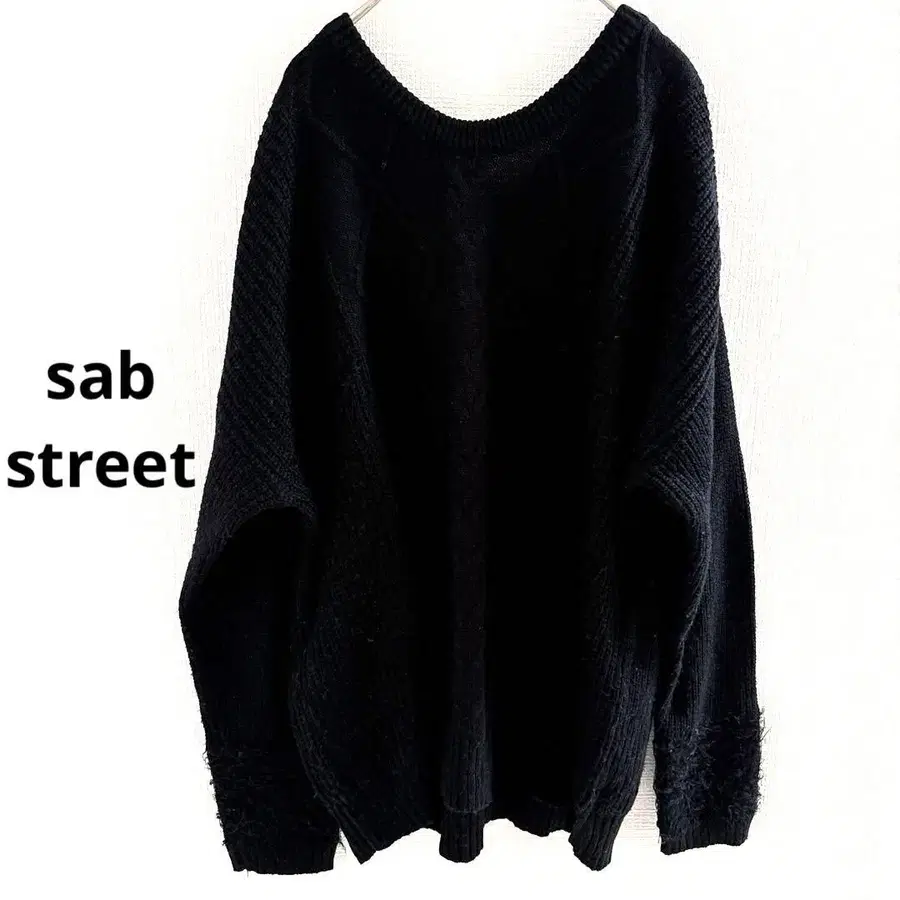 sab street 울 케이블 짜임 블랙 니트 루즈핏 L