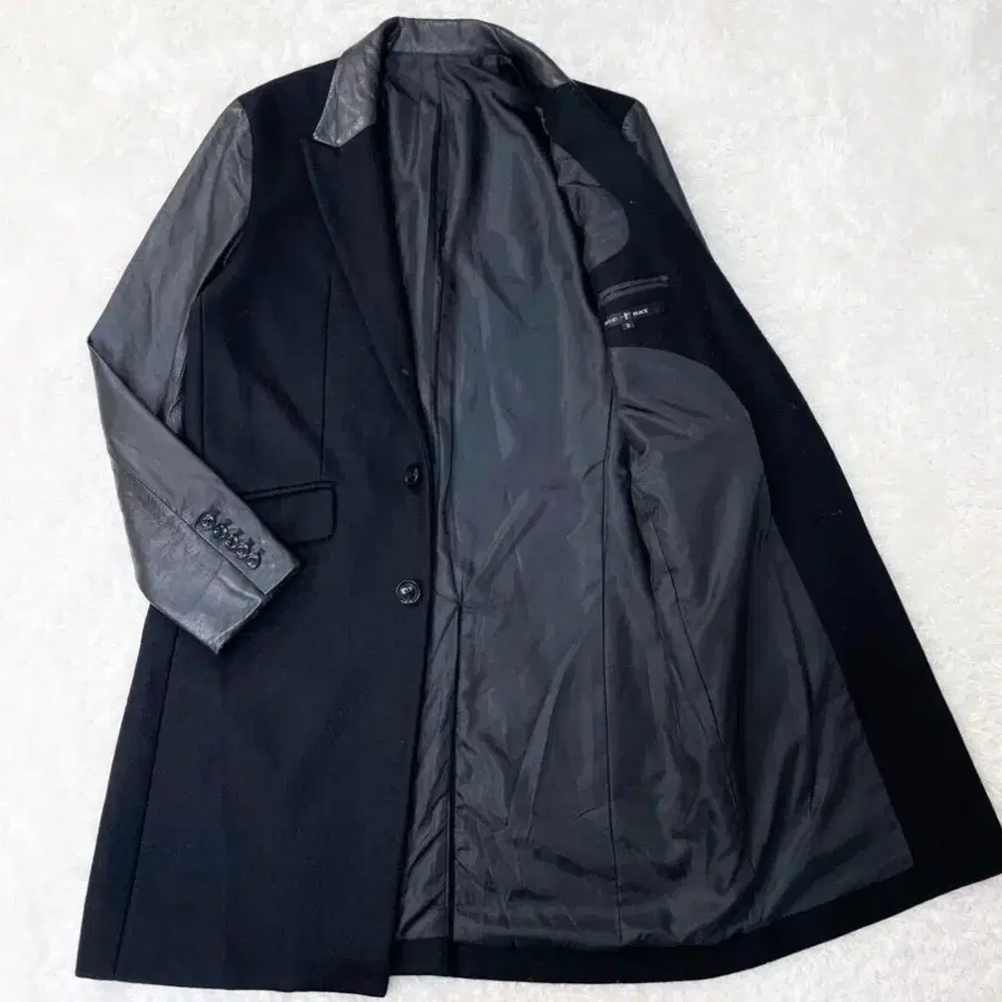 새상품급/L/램 가죽 소매 절개 소매 가죽 체스터 코트 블랙 NO ID.