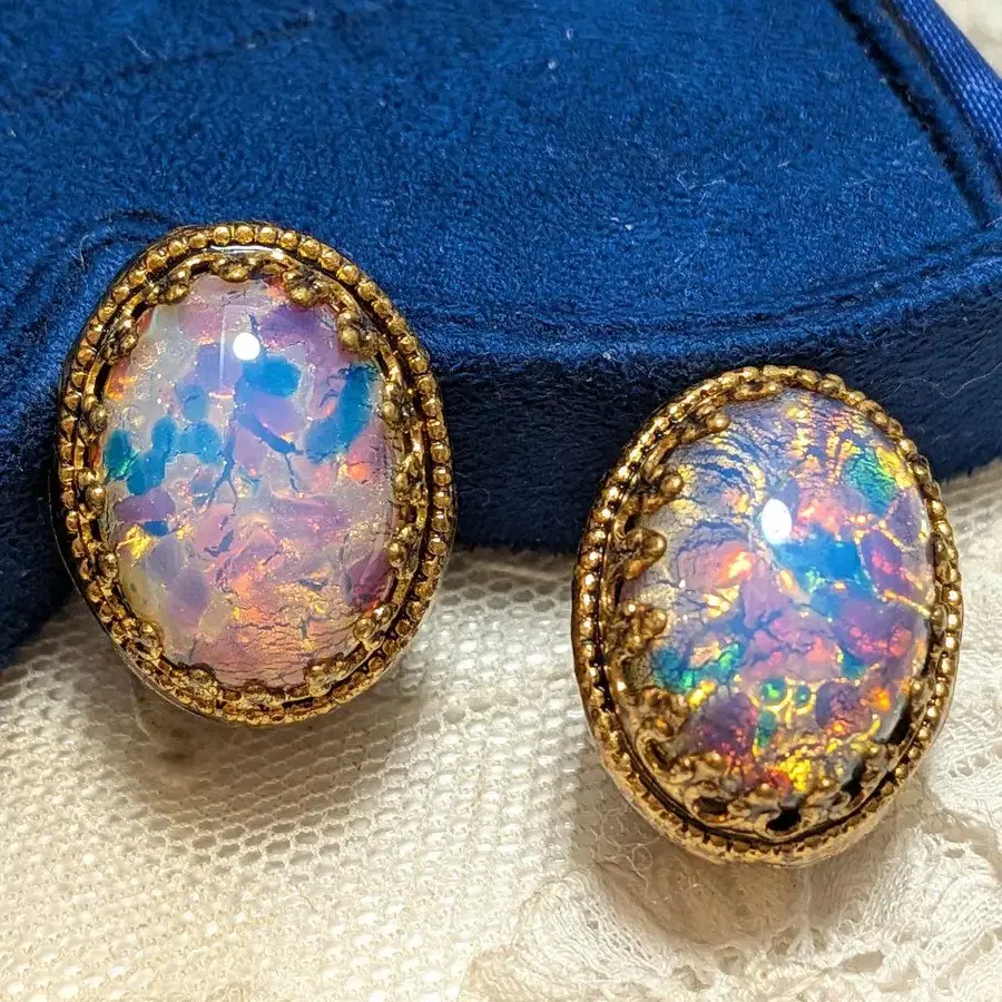 W.GERMANY 핑크 계열 파이어 오팔 유리 오벌 귀찌