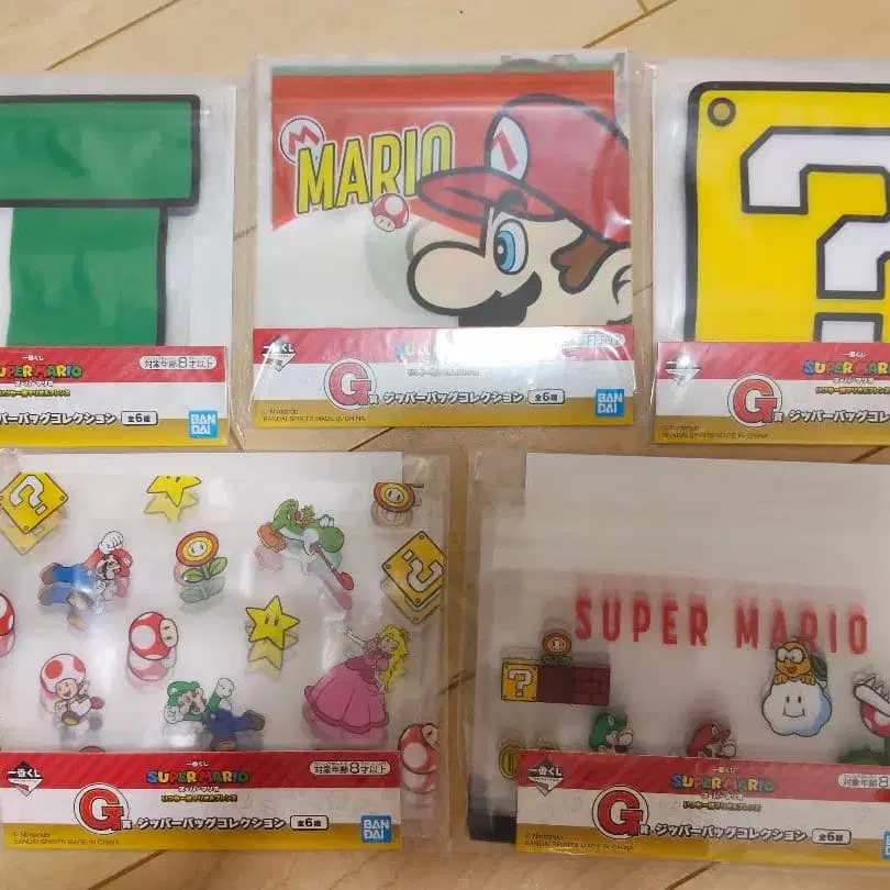 제일복권 슈퍼 마리오 G상 지퍼 백 컬렉션 5개 세트입니다.