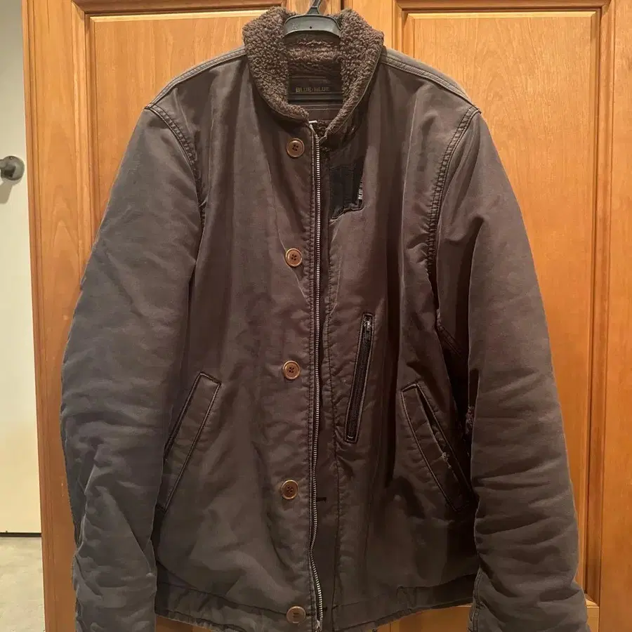 플리스 카라 부착 브라운 밀리터리 자켓. - 브랜드: BLUE/BLUE - 색상: 브라운 - 디자인: 밀리터리 자켓 - 소재: 플리스 카라 - 스타일: 프론트 버튼식 - 안쪽 택: BLUE/BLUE 방문해 주셔서 감사합니다. 재작년 구제 의류 매장에서 구매한 것이지만 사용하지 않게 되어 판매합니다. 버튼, 드로 코드, 지퍼 등 모두 문제없이 사용 가능합니다. 전체적으로 큰 데미지 없이 비교적 새상품급이라고 생각하지만, 어디까지나 중고품이므로 이해하시는 분만 구매 부탁드립니다. 무엇이든 질문이 있으시면 편하게 댓글 주세요. 얼룩, 찢김, 냄새 등 - 없음