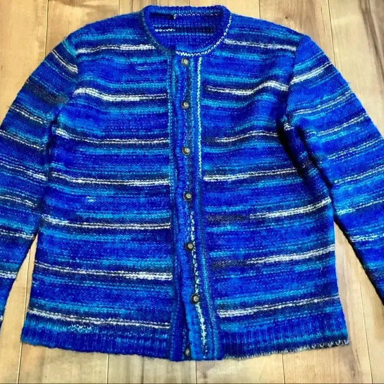 빈티지 메탈 버튼 블루 계열 니트 보더 가디건