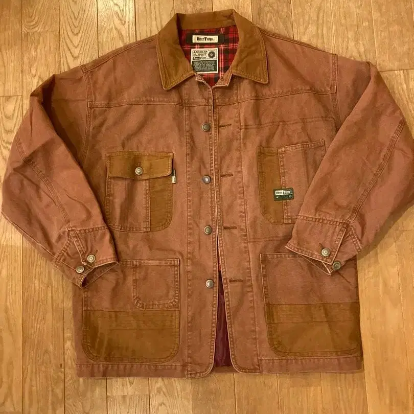 덕(Duck) 원단의 커버올입니다. 브라운 컬러이며, 옷깃과 다른 부분의 배색이 멋스러우면서도 귀여운 느낌을 주는 아이템입니다. 안감은 레드, 블랙, 화이트 체크 패턴으로 빈티지한 느낌을 줍니다. 메탈 버튼도 오리지널로 매우 멋스럽습니다. 제조사는 불명이며 사이즈 표기도 지워져 보이지 않습니다. 커버올의 사이즈감은 재팬 L 사이즈 정도입니다. 실측치수를 바탕으로 가지고 계신 옷과 비교하여 검토 부탁드립니다. 어느 정도 색이 빠져 멋스럽게 완성되었습니다. 덕 원단 커버올을 찾으시는 분, 관심 있는 분들의 연락을 기다립니다. 표기 불명 어깨 너비 57cm 가슴 너비 (겨드랑이 아래) 62cm 소매 길이 54cm 기장 (옷깃 아래부터) 75cm