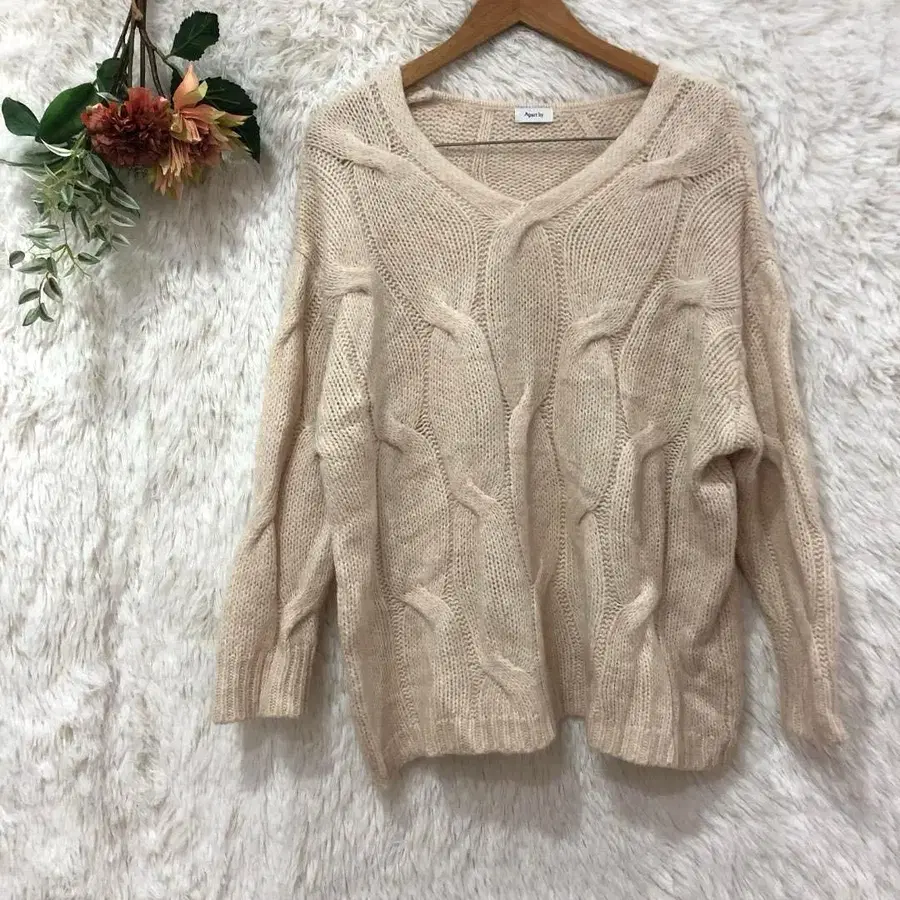 아파트 바이 로리즈 긴팔 케이블 니트 스웨터 [F] V넥 모헤어