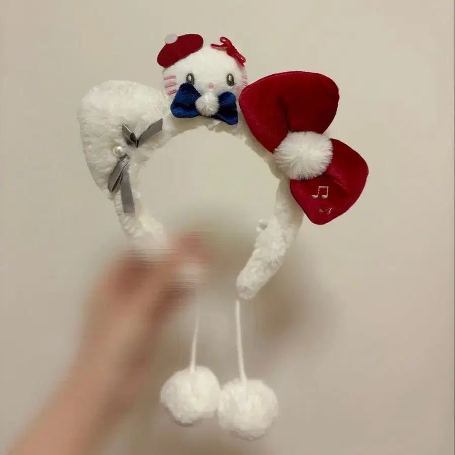 USJ 머리띠 화이트 퍼 빨간색 모자