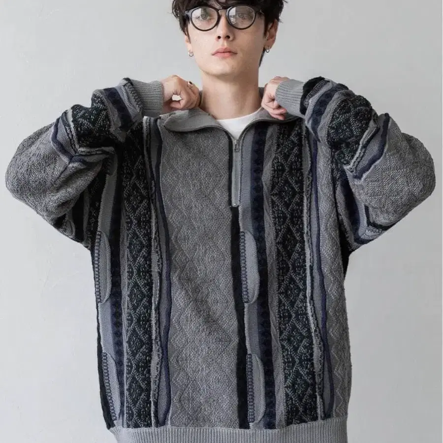 RAGEBLUE 레이지블루 레트로 자카드 하프 지퍼 니트 M 완판템
