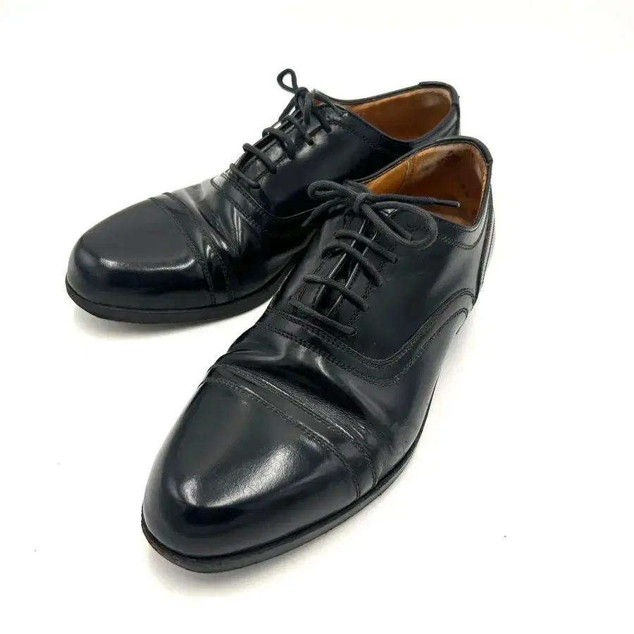단정한 스트레이트 팁이 발밑을 조여주는 세련된 비즈니스 슈즈.