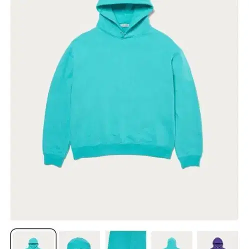 터콰이즈 컬러의 후드 부착 후드티, 심플하고 스타일리시한 디자인.