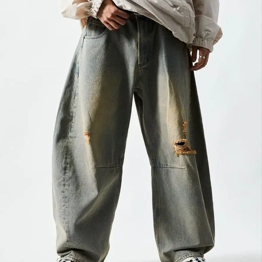 FREAK'S STORE 와이드 실루엣 커브 데님 팬츠 데미지 가공