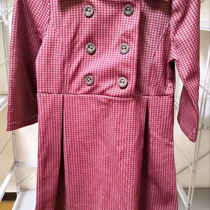 7부 소매의 미니 원피스로 더블 브레스트 (2열 버튼) 디자인이 특징입니다.