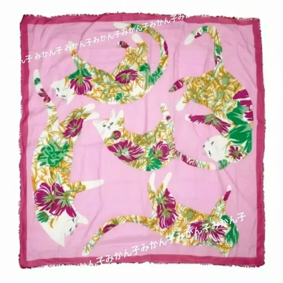 ◎ 캐시미어 x 코튼 대형 스톨 핑크 x 고양이 140cm 정사각형 고양이 여성용 스톨