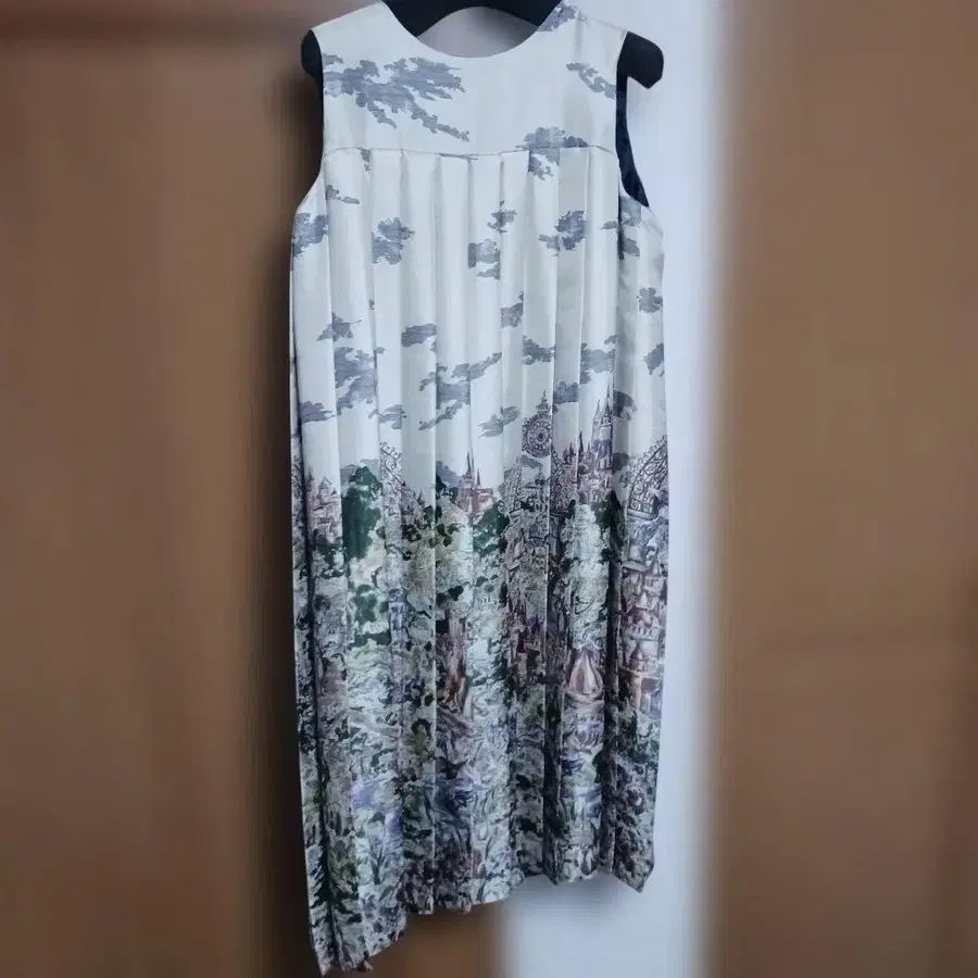 로이스크레용 풍경화 프린트 슬리브리스 무릎 기장 원피스