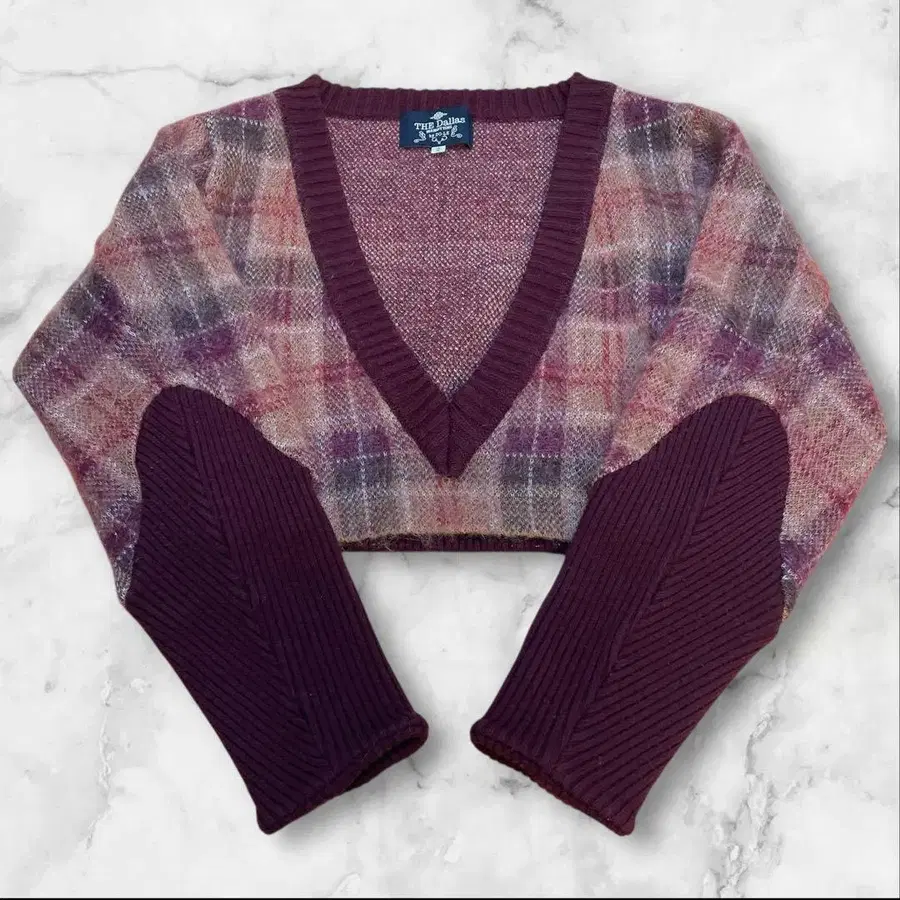 모헤어 체크 크롭 니트