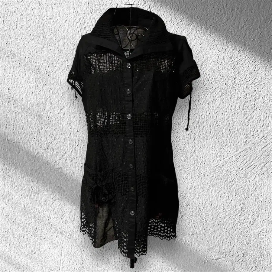 1198/003 [ 브랜드 ] RENAULT ( VAULT 라인 ) [ 색상 ] 블랙 [ 사이즈 ] M [ 소재 ] 면 100% 시스루 레이스 x 메쉬 절개 디자인이 아름다운, 개성 있는 셔츠 원피스/튜닉입니다. 가볍고 통기성이 있어, 레이어드 코디나 모드 스타일 패션에도 딱입니다 ✨ 상태: 구제 의류이지만, 눈에 띄는 얼룩이나 데미지 없이 비교적 양호합니다. 추천 포인트 하나뿐인 듯한 섬세한 디자인 봄/가을에는 겉옷으로도 ◎ 여성 빈티지나 K-스타일 코디에도 추천 방문해 주셔서 감사합니다. 최대한 가격 인하에 대응하고 있습니다! 가격은 최저 이익 라인을 고려하여 설정했기 때문에, 상식적인 범위 내에서의 협의는 대환영입니다 ✨ 묶음 구매도 저렴하게 가능하니, 부담 없이 댓글 남겨주세요! 또한, 이 상품은 즉시 구매 가능합니다. 어떤 경우에도 먼저 구매하신 분을 우선하오니, 양해 부탁드립니다. ● 상품 정보 사이즈 어깨 너비 33cm 가슴 너비 45cm 소매 길이 15cm 기장 78cm ※ 개인 측정으로 약간의 오차가 있을 수 있습니다. 사이즈감은 체형이나 느끼는 방식, 취향 등에 따라 개인차가 있습니다. 오해를 피하기 위해 사이즈감에 대한 질문에는 답변을 삼가고 있습니다. 실측치수와 가지고 계신 옷과의 비교를 추천합니다. 착용 사진은 정중히 사양합니다. 즉시 구매 OK. 배송비 부담. [ 저희가 취급하는 상품은 모두 구제 의류입니다 ] 최대한 상태 체크나, 얼룩 제거, 보풀 제거 등 관리는 하고 있습니다만, 구제 의류이므로 제거되지 않는 냄새나 데미지도 있습니다. (경우에 따라 클리닝에도 맡깁니다) 가능한 범위 내에서 검품은 하고 있습니다만, 누락 등이 있을 수도 있습니다. 양해해 주시면 감사하겠습니다. 또한, 조명 관계로 이미지 색상과 다소 차이가 있을 수 있으니 양해 부탁드립니다. 중고품이라는 점을 충분히 이해하신 후 구매 부탁드립니다. 최대한 신속하게 대응하겠습니다!! 포장 방법, 발송 방법 컴팩트하게 발송하기 위해 작게 접어서 보내드립니다. 양해 부탁드립니다. 무료 배송으로 익명 배송합니다. 질문 등이 있으시면 댓글 부탁드립니다.