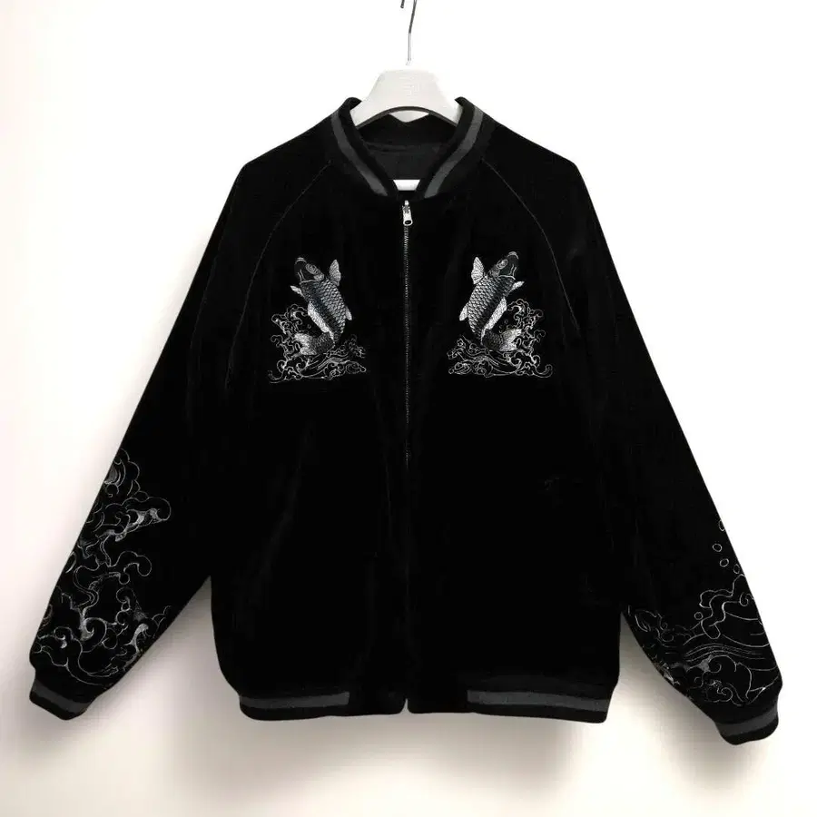앞뒤로 역동적인 잉어 자수 디자인, 소매에는 강물 같은 흐름의 자수 디자인이 들어가 있습니다.