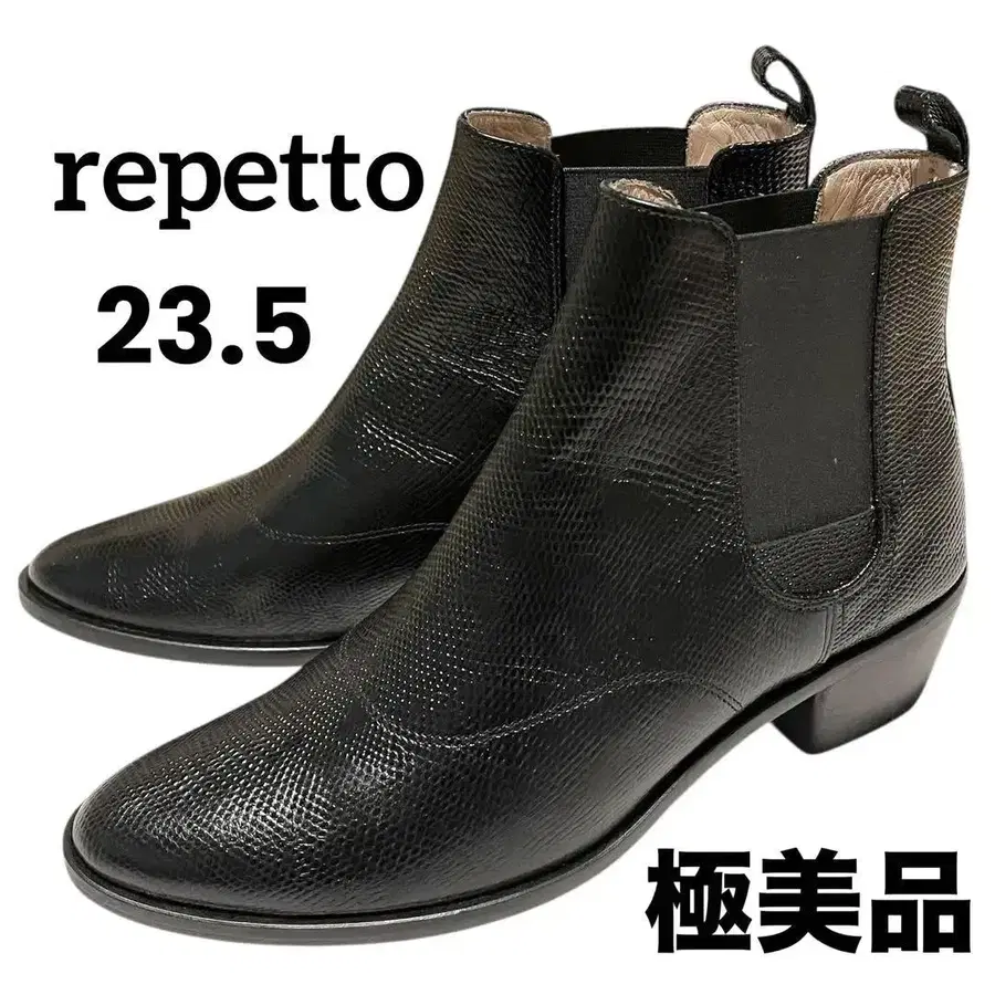 [ 컨디션 최상 ] 레페토 사이드 고어 부츠 리자드 엠보 가죽 블랙