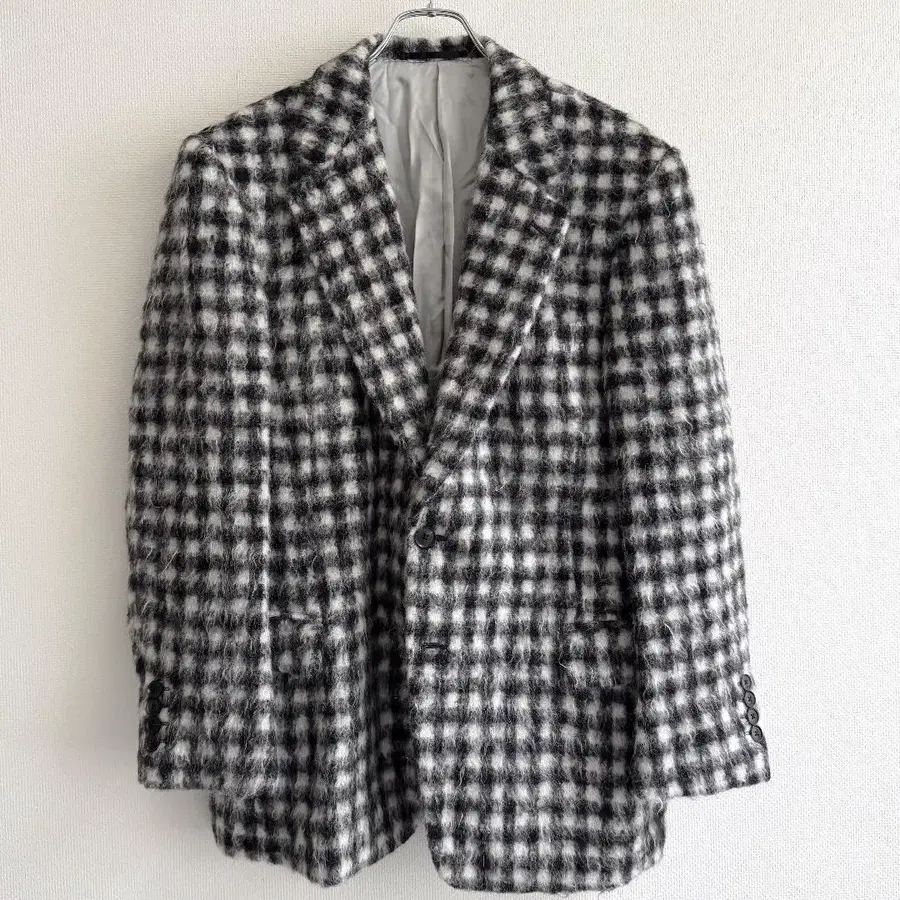 테일러드 자켓 글렌체크 브라운 알파카 모헤어 울